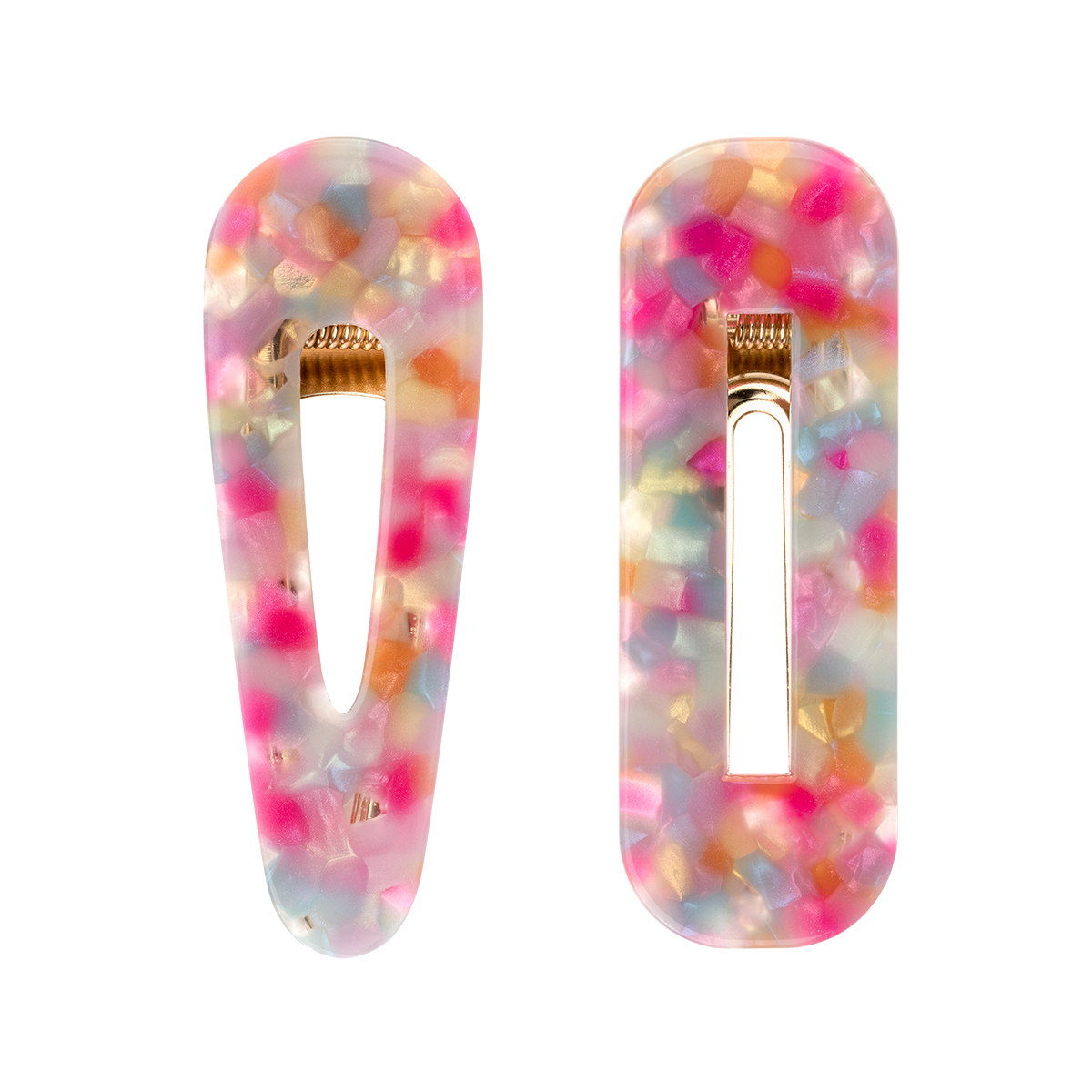 invisibobble CLIPSTAR Au Soleil Dazzling Wave – две элегантные заколочки для волос в трендовом дизайне с переливами розового и голубого оттенков с перламутровым эффектом. CLIPSTAR надежно при этом бережно фиксирует небольшие пряди волос, мгновенно добавляя очарование любой прическе. Комбинируйте заколочки в образах, чтобы подчеркнуть свою индивидуальность. Для любых образов, для всех типов волос.